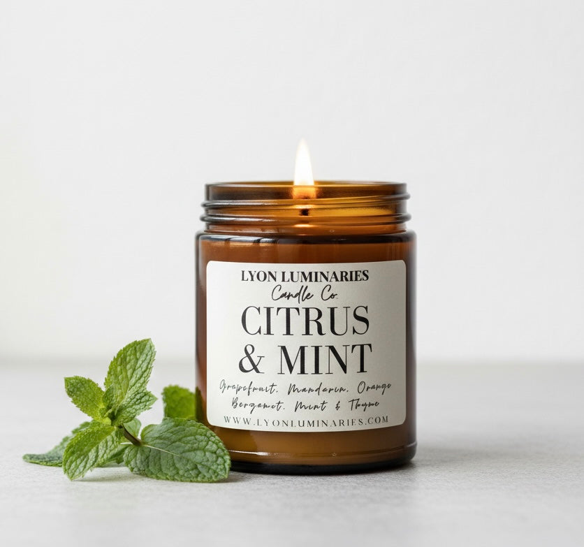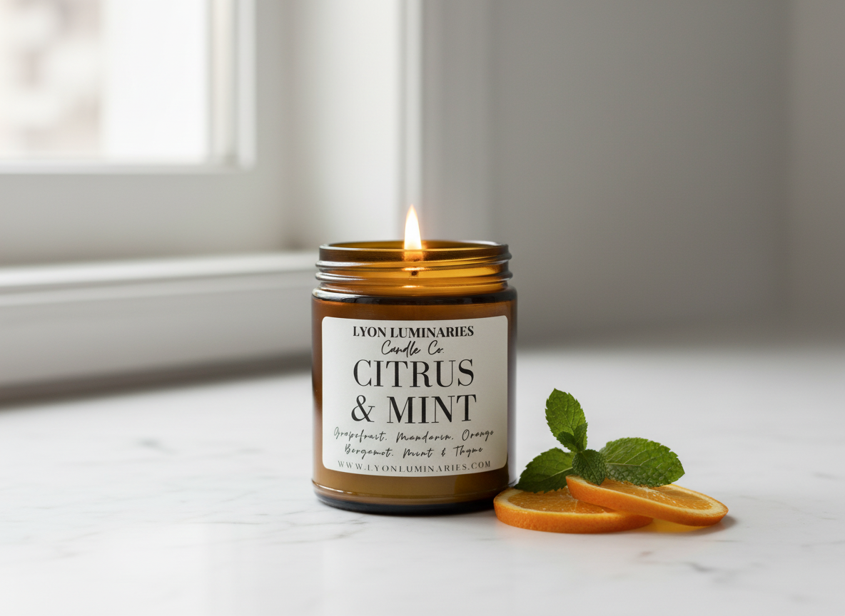 Citrus essential oils enhance this bold scent, while mint, thyme, and bergamot essential oils give it an herbal counter to the punchy, juicy grapefruit.